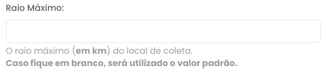 - 5 - Raio Máximo: Defina o raio máximo do local de coleta para receber pedidos. Se deixar em branco, será usada a distância padrão configurada no menu "distâncias permitidas".