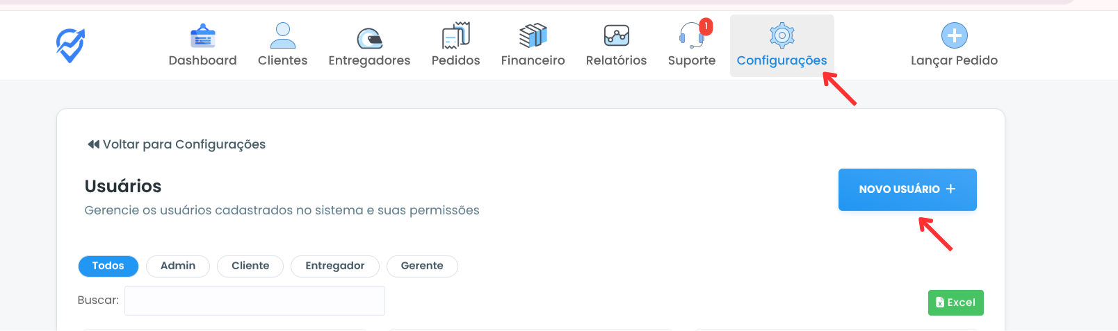 Cadastrar um novo usuário administrador permite que outra pessoa também tenha acesso total ao seu painel administrativo, com permissão para visualizar e alterar todas as configurações do sistema. Essa função é ideal para sócios, gerentes ou responsáveis pela gestão completa da operação.